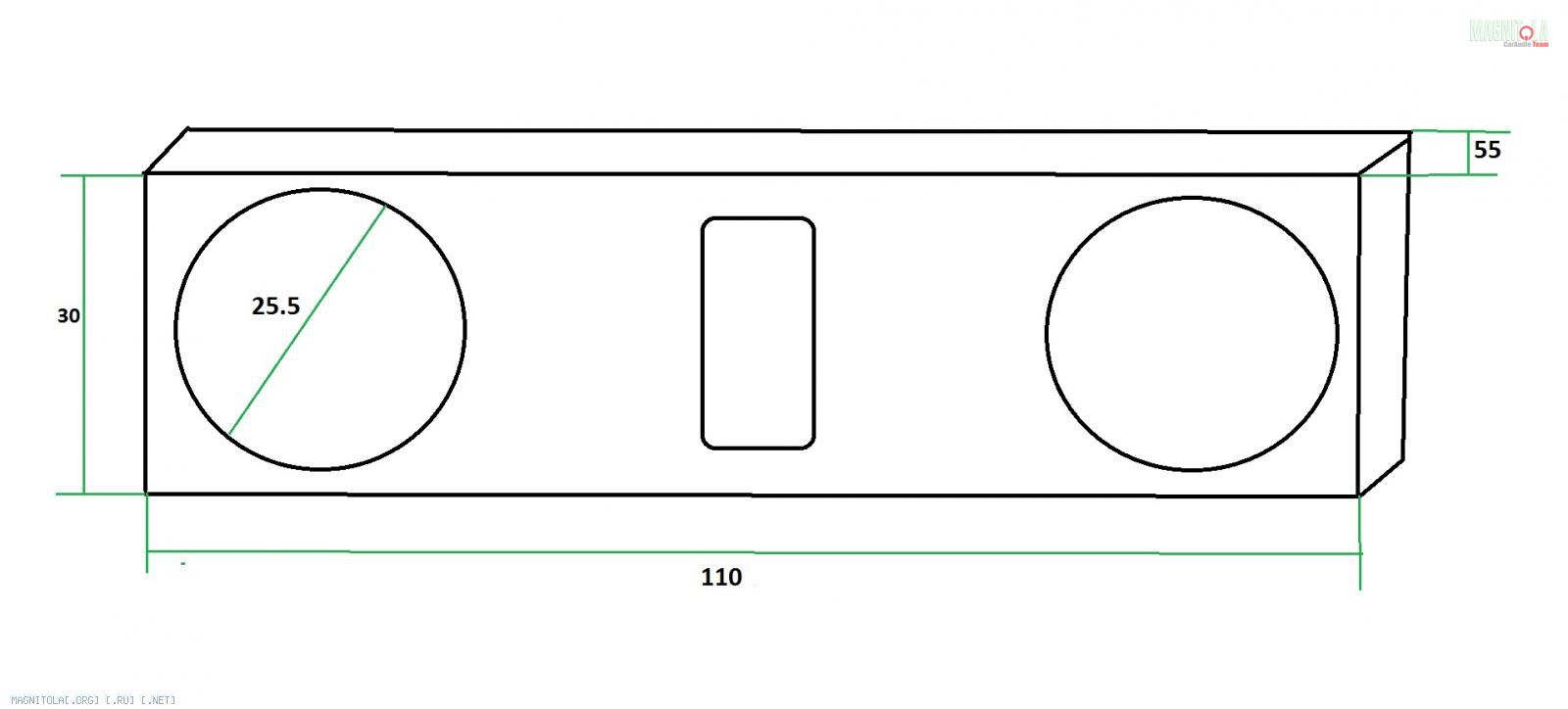Кто может помочь с чертежем или посоветовать что можно туда придумать. В идеале хочу 2 (может 3) десятки (или 1 двенашку в заднюю полку) и подключить их к отдельному усилку.