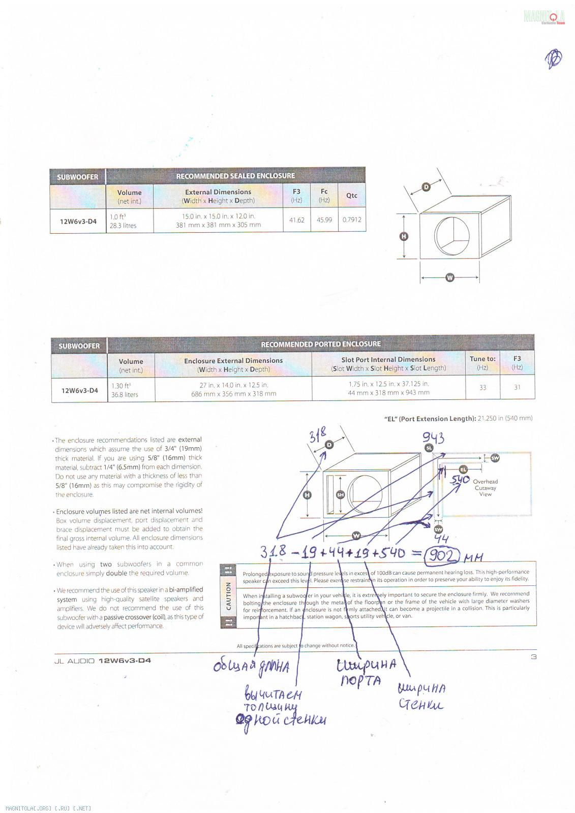 Ответ с оф.сайта JL Audio про мощность саба JL 12W6V3: