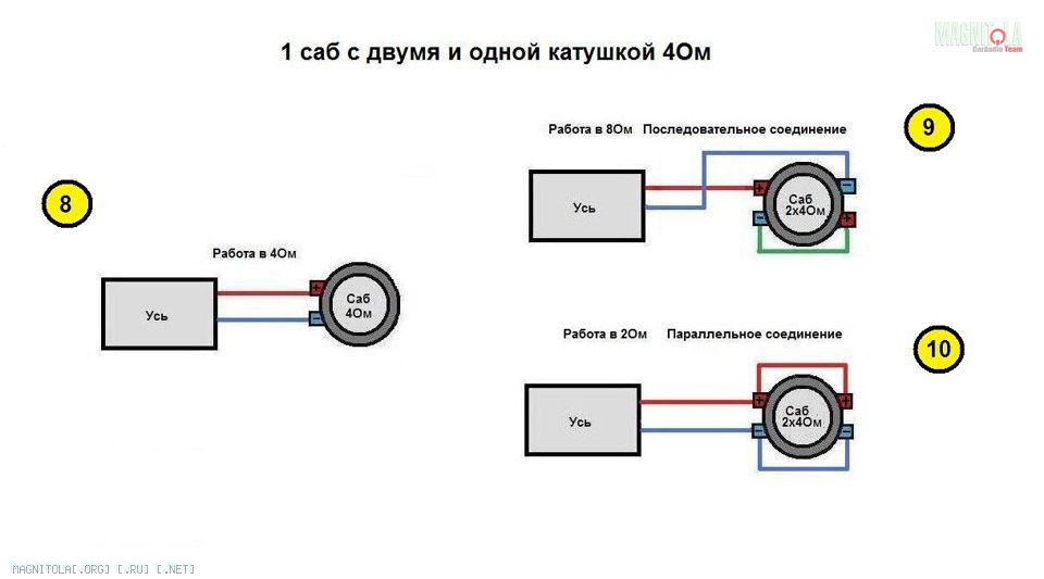 следовательно его нельзя подключить в мост на 4ома. саб мне надо брать либо однокатушечный на 4ом, либо 2+2(подключать последовательно).