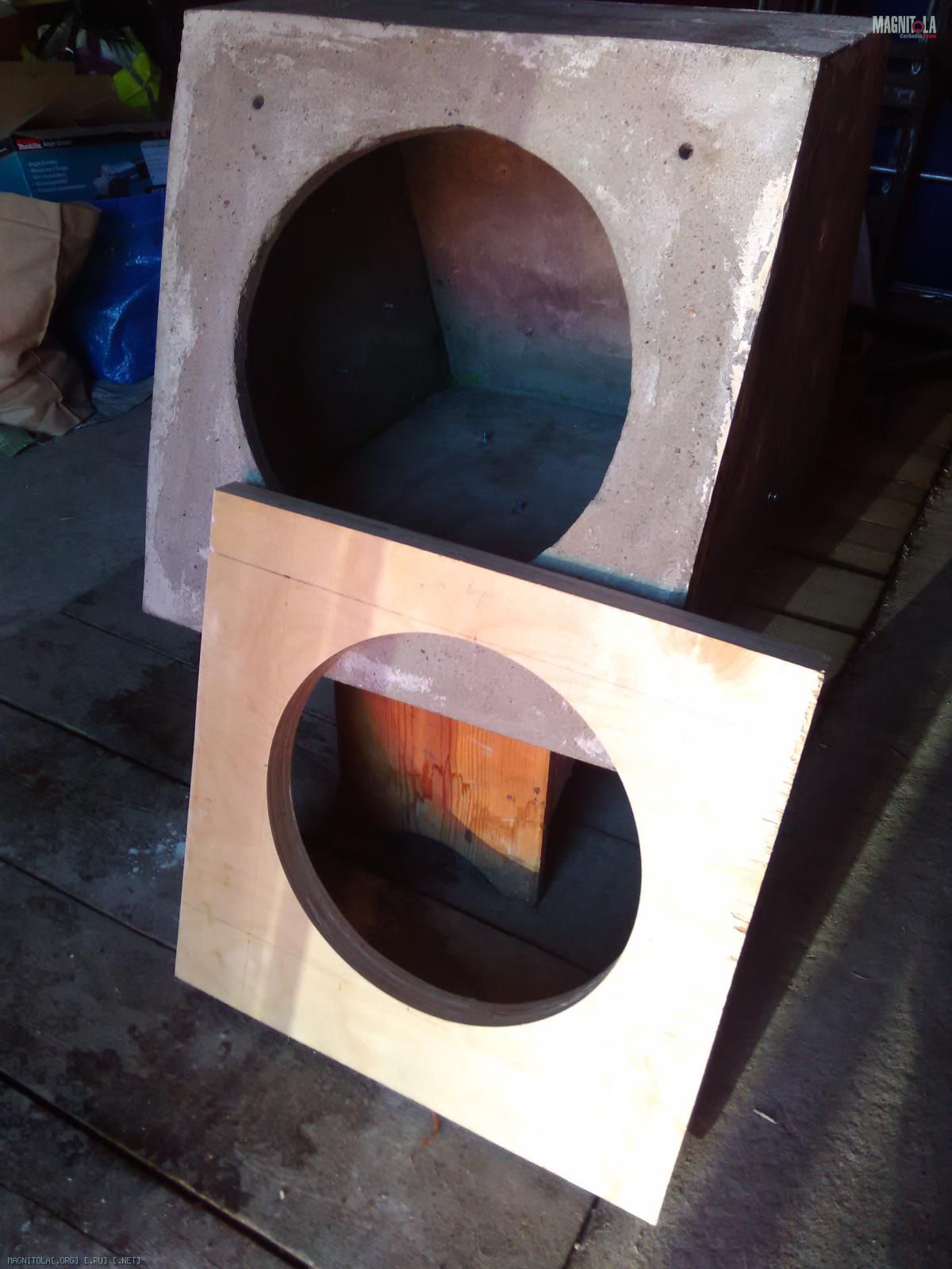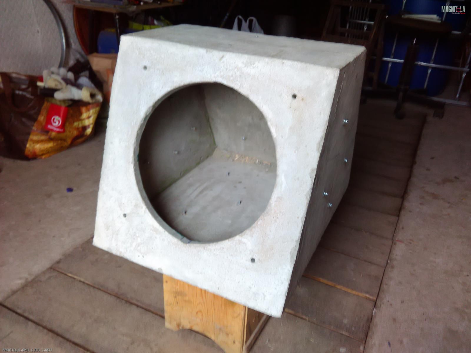 Ну как я могу словами рассказать, просто думаю что стенки коробов из фанеры, дсп,мдф "поют" свою песню ну а из ж/б думаю стенки молчат , а весь полезный сигнал исходит от динамика..