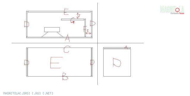 7. В грани А в центре выпиливаем отверстие под саб и в нужном месте прямоугольник под порт.
