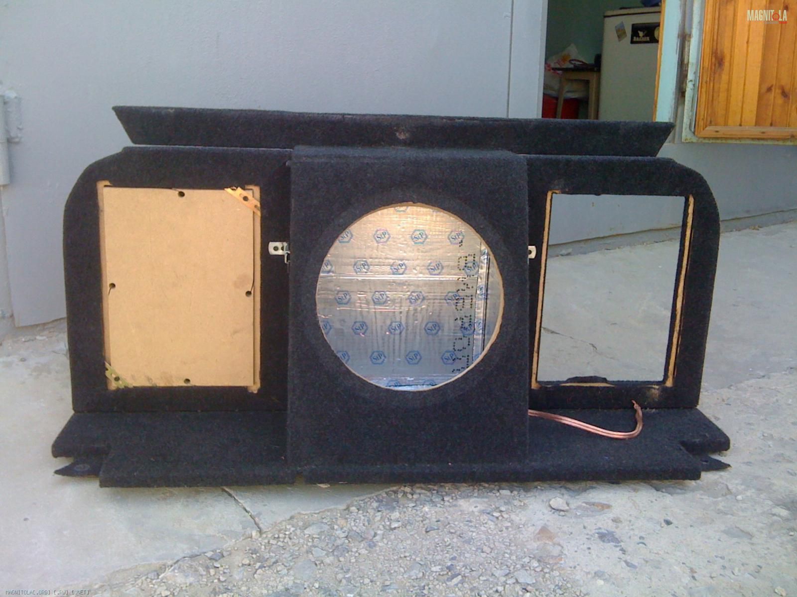 Бас вывести думаю таким способом, в задней полке сделать 2-3 круглых выреза, установив на них грили от каких-нить колонок.