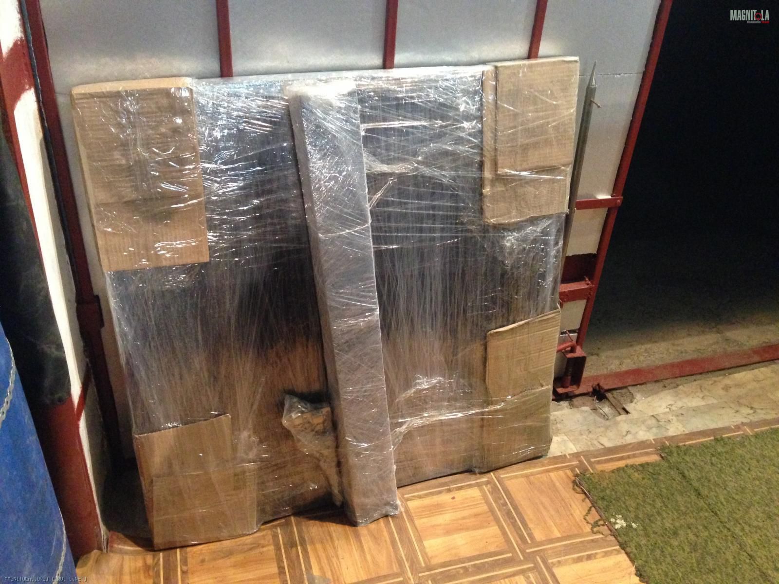 Углы закрыл картоном, обмотано стреч пленкой и скотч. крепление внутри.