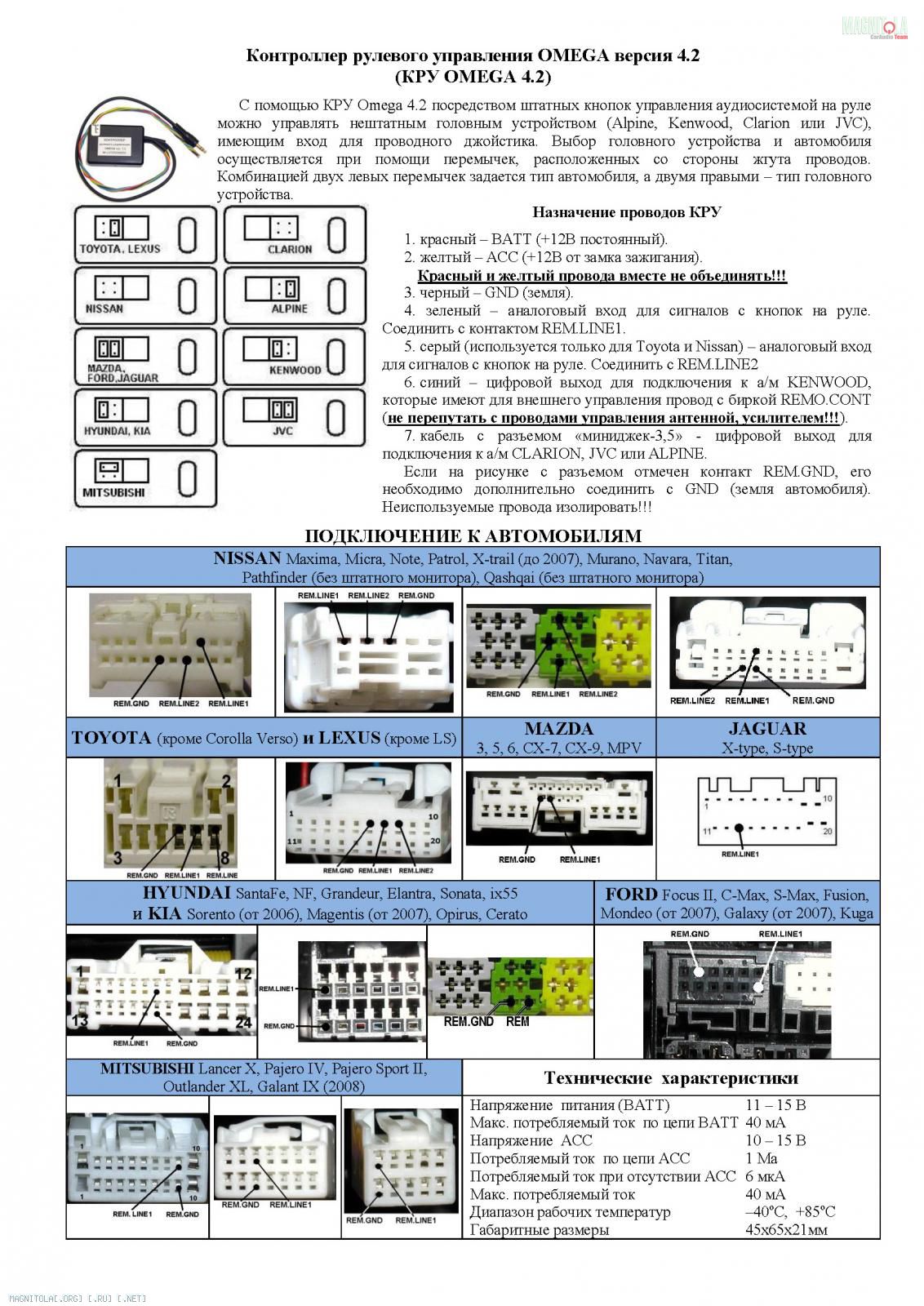 Продам контроллер рулевого управления OMEGA ver.4.2 для управления не штатным головным устройством фирм Alpine, Clarion, Kenwood, JVC с штатных кнопок на руле автомобилей марок TOYOTA, NISSAN, MAZDA, FORD, JAGUAR, HYUNDAI, MITSUBISHI. Стоял в моей системе, продаю в связи с продажей машины. Б/у.