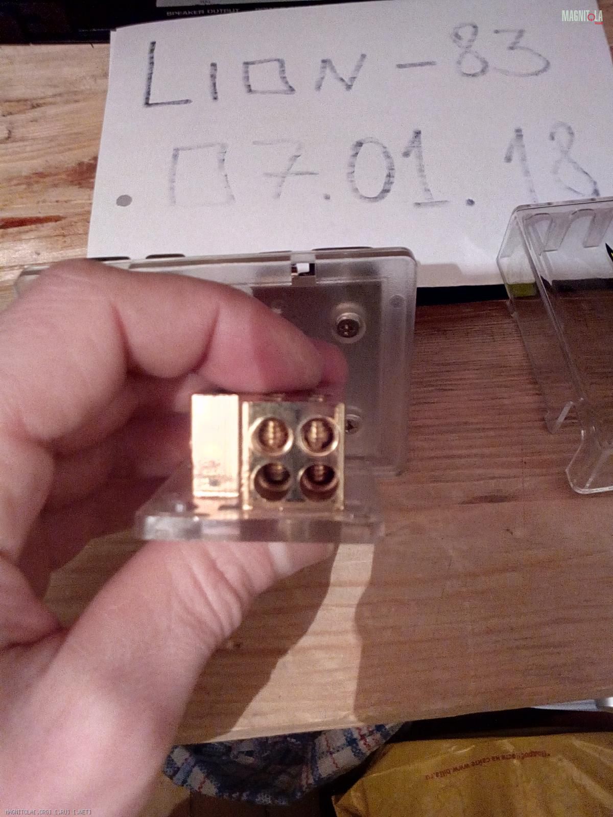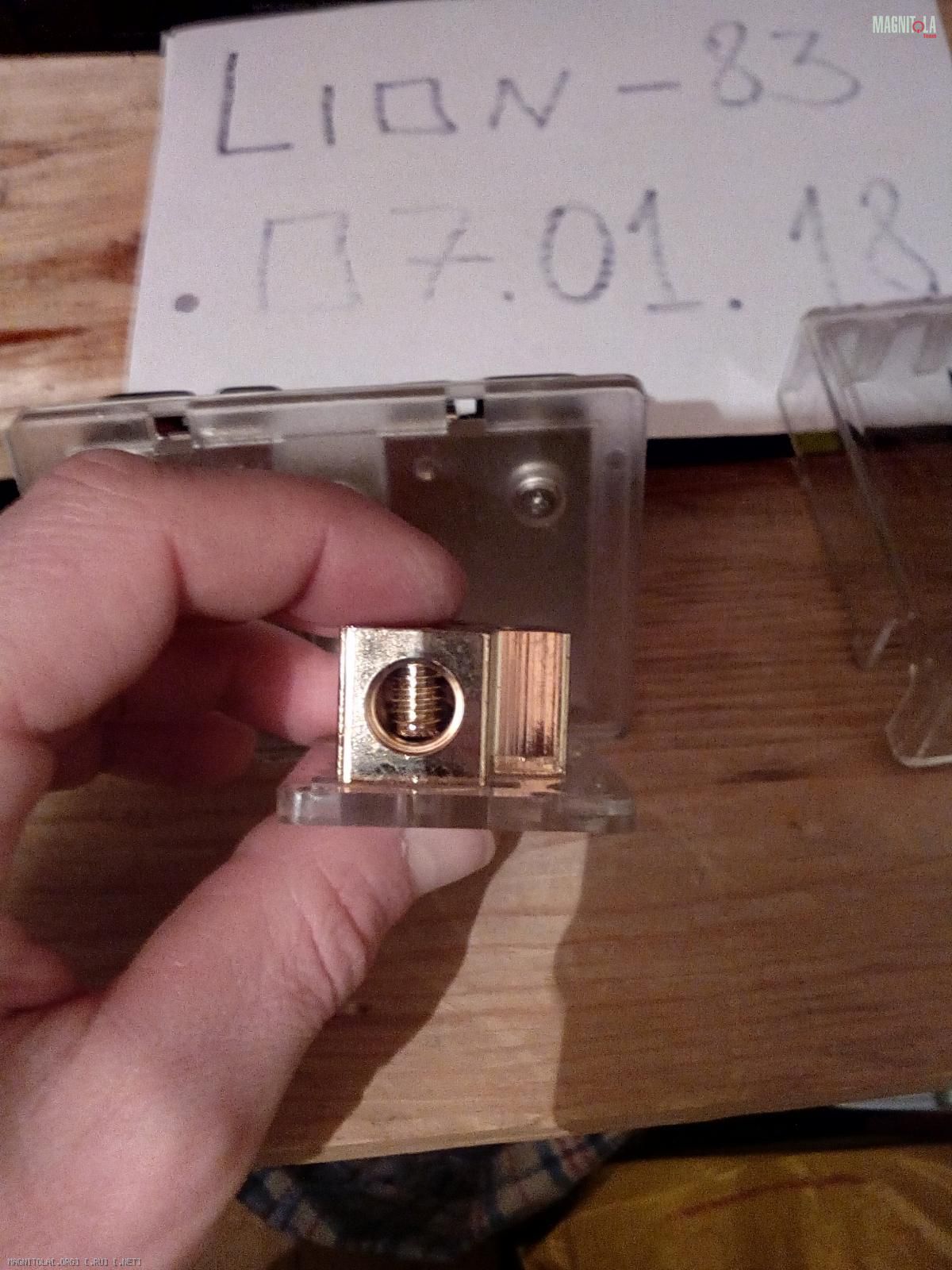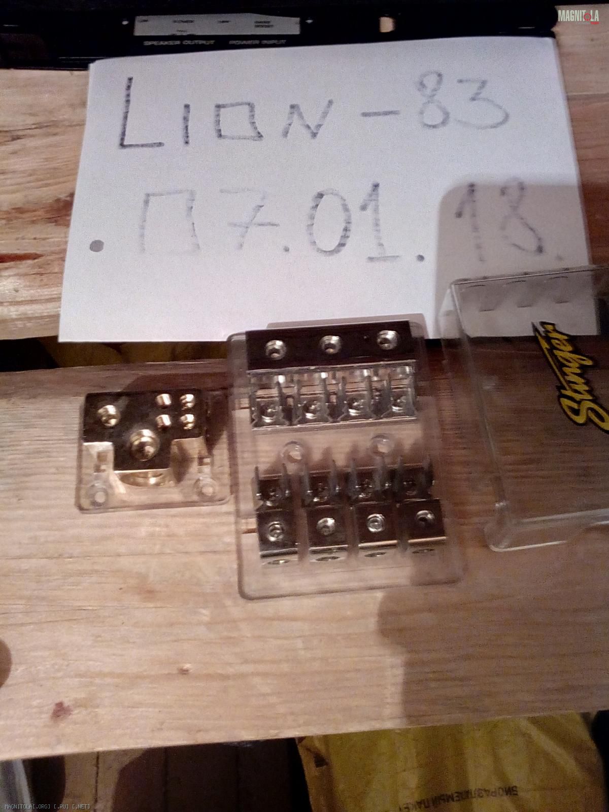Два распределителя. Плюсовой:вход 3*4Ga,выходы 4*8Ga. Минусовой-видно на фото. Минусовой без крышки.