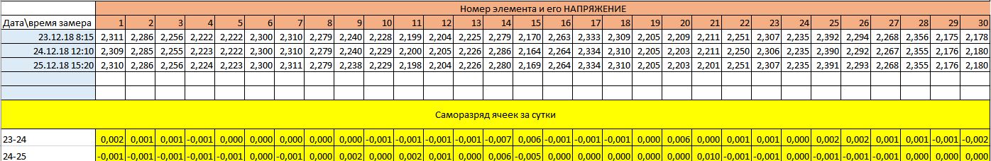 Ежедневно замеряю ячейки на предмет саморазряда.