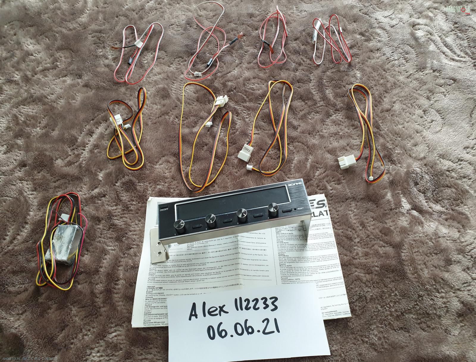 В комплекте панель, питание переделанное под 12 В авто, 4 термопары для усилителей, 4 кабеля для подключения вентиляторов.