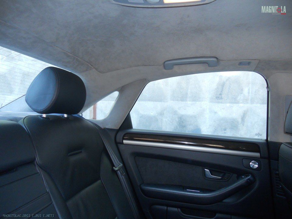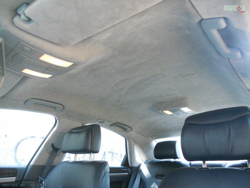 Итак, как вы уже, должно быть догадались, в этом авто мы перетянули потолок и стойки в итальянскую алькантару светло-серого цвета – выбирали под сток.
