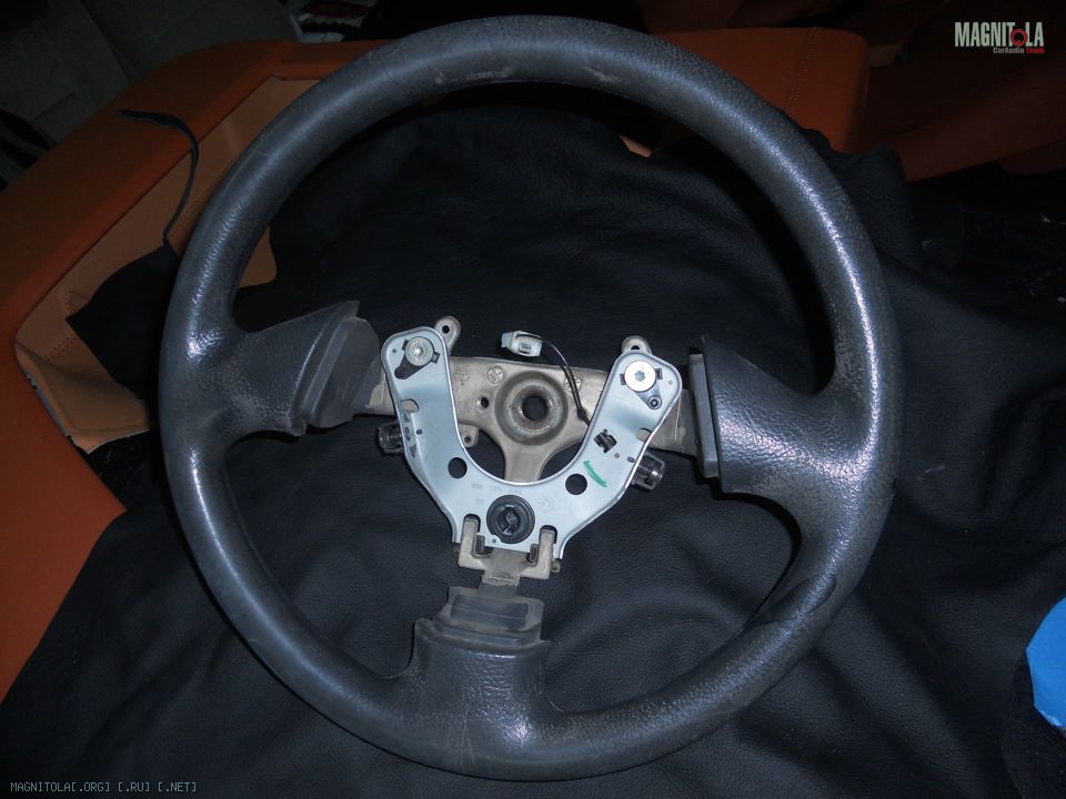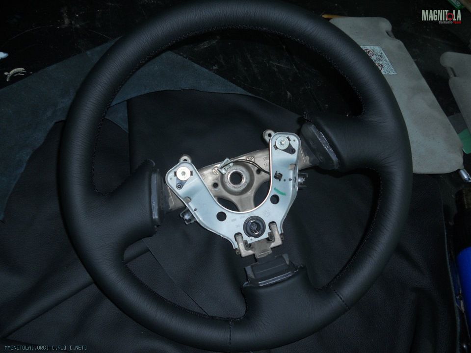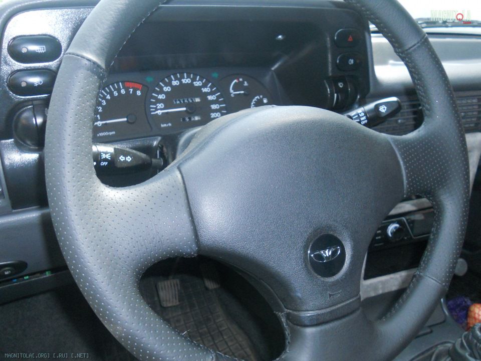 Четвертый руль от Daewoo Nexia. Парень работает менеджером по запчастям, частенько за рулем. У него был обычный резиновый руль, а на выходе он получил кожаный с перфорацией, теперь крутить баранку намного комфортнее.