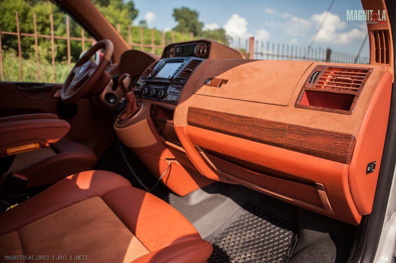 И вот в назначенное время приезжает к нам семья на VW Golf, обычное дело, надо подобрать алькантару под салон. С виду обычные люди, но внешность как всегда обманчива и как всегда в тихом омуте черти водятся… и в процессе подбора материала, как бы невзначай, ими роняется фраза: «Кстати, нам надо еще минивэн vw caravelle переделать, возьметесь?». У нас, конечно, тут же загорелись глаза, но наученные горьким опытом все-таки спросили: «А что с ним? Обновить хотите?» «Ну, вроде того…», загадочно ответили они. А! чем черт не шутит, подумали мы и не прогадали…
