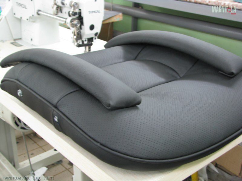 А один клиент настолько увлекся перетяжкой салона, что решил дома повторить текстуру сидений своего любимого авто.Принес нам компьютерное кресло, все перетянули автомобильной кожей)