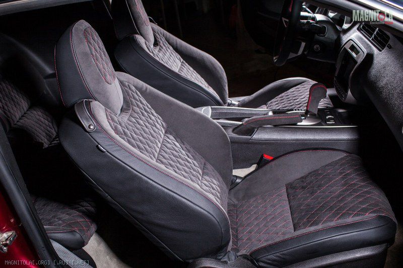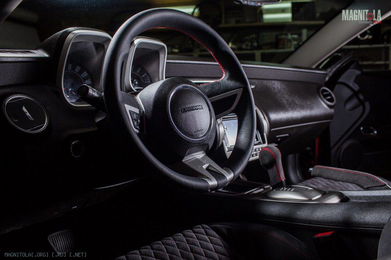 У Camaro очень интересная форма сидений и подголовников, они издалека слегка напоминают человеческие очертания плеч и головы. Мы хотели это показать и грамотно их выделить. При этом мы старались, все же сгладить дизайн и выдержать его в одном стиле. Надеюсь, что нам это удалось.