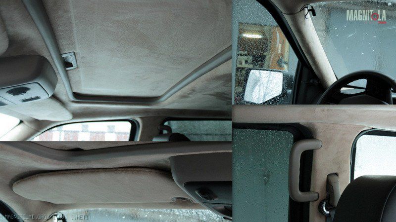 А мы поехали дальше и приступили к своей любимой части салона - к его верхней составляющей. Потолок со стойками и козырьками мы перетянули в алькан... Ан, нет! Клиент изначально не хотел алькантару, он отдал предпочтение немецкой черной ткани mah, она обычно идет в стандартной комплектации для многих немцев. У нас ПОЯВИЛСЯ этот материал, и теперь для тех, кто не хочет видеть на своем потолке алькантару, а такие есть, мы предлагаем эту ткань. В ассортименте около 10 цветовых решений - приезжайте и выбирайте!