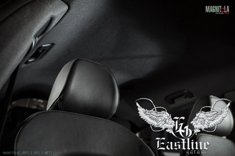 И вот единственное, чего ему не хватало, так это грамотный потолок. Конечно же, и это мы исправили, перетянув все в алькантару цвета антрацит и покрасив пластик.