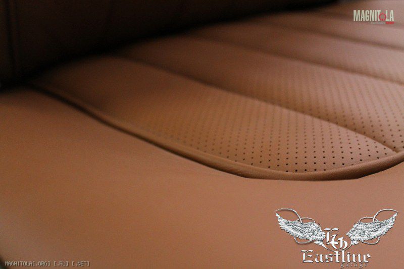 Нашей целью, как известно, было сделать его еще лучше, а задача состояла в том, чтобы пошить строгий и одновременно стильный салон, естественно, мы знаем, как это осуществить. Работа началась, основным материалом вместе с владелицей мы выбрали черную кожу parigi. Центральные вставки исполнены в ее перфорированном варианте, и все это дело было даже не выделено, а огранено светлой ниткой — это сочетание не стареет никогда, с таким салоном точно не прогадаешь!
