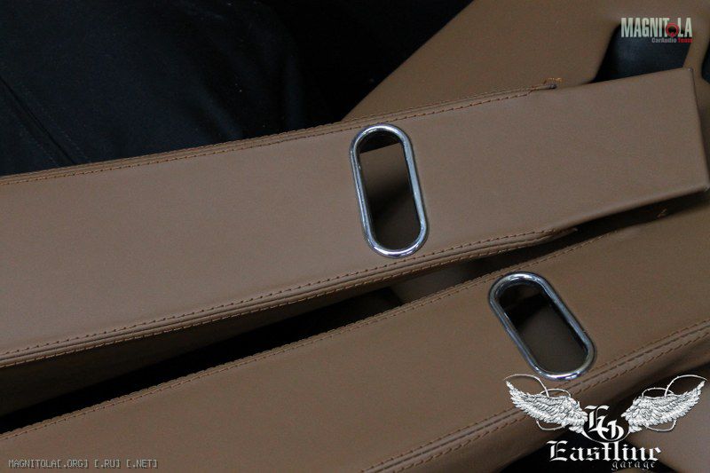 Дверные вставки мы также оформили перфорированной кожей, дабы создать целостность образа. Для девушки в первую очередь важно, чтобы все идеально гармонировало и сочеталось между собой, чего мы и добились. Возможно, вы подумаете, что такое исполнение салона скучно, но я вам скажу, что поставленную нам задачу мы выполнили на все 100 %, все вышло строго и стильно, и в коне-то концов не всем же выпендриваться! В который раз девушки меня радуют своим вкусом, на такое всегда приятно смотреть!