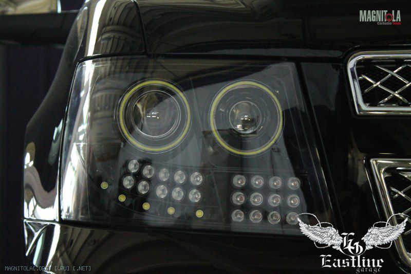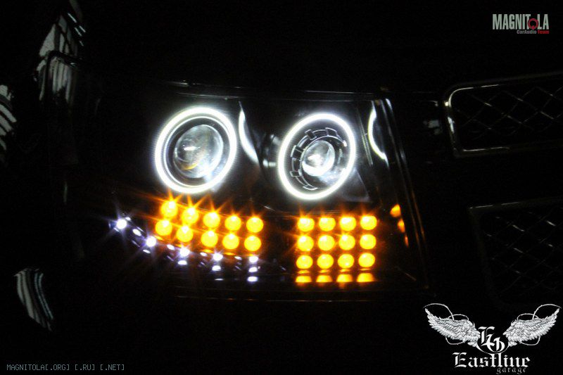 Принявшись за доработку, внедрили достойные билинзы, по 2 на каждую фару, украсили их «ангельскими глазками», поворотники сделали диодными, плюс в фарах теперь красуются ходовые огни, ну и отражатель в черный. Получилось очень по-хищному, а главное, что мы установили ксенон, и теперь все очень достойно светит (внимание! по всем правилам!) и никого не слепит!