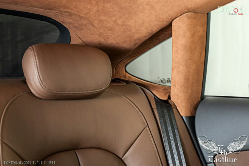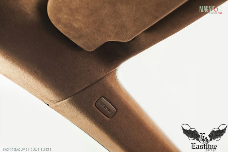 В предыдущих машинах нашего гостя уже стояли отличные потолки из алькантары, поэтому вопрос с выбором материала не стоял так остро. Было решено использовать итальянскую алькантару цвета мокко.