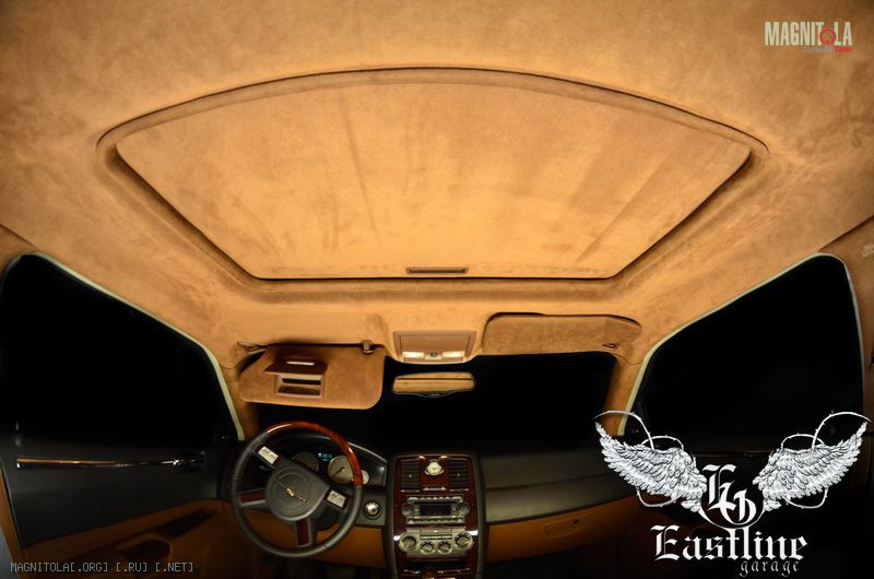 Итак, автомобиль о котором пойдет сейчас речь – американец, он черного цвета, 2004 года выпуска. Это Chrysler 300C. Владелец приобрел его не так давно с рук. Автомобиль обтянут черной матовой пленкой, что добавляет ему больше харазматичности и стиля. Но, внутри автомобиль требовал изменений, так как салон его выглядел крайне печально. И эти изменения коснулись всего интерьера. В данном Chrysler 300C мы изменили все: потолок, стойки, сидения, двери, торпедо, руль и даже пластик на руле и центральной консоли. Перечень работ дан, пришло время разобраться во всем по порядку.