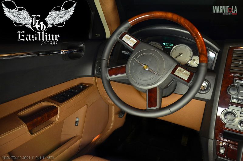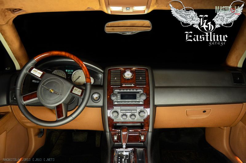 Вот и пришла пора самого интересного. Аквапринт в салоне этого Chrysler 300C. Тут мы «плясали» от той самой деревянной вставки на рулевом колесе. Для того, чтобы она не осталось одиноким пятном в салоне этого авто, мы в точности подобрали рисунок и его цвет для аквапринта на центральной консоли и пластике под стеклоподъемниками. Конечно, можно было выполнить процедуру шпонирования, но для чего? Аквапечать в точности повторила вставку на руле, а значит, нужный нам результат достигнут. Благодаря аквапринту можно любую поверхность изменить до неузнаваемости. Если Вы желаете иметь в салоне своего авто дерево, карбон, любой металл и т.д., добро пожаловать к нам в Eastline Garage!