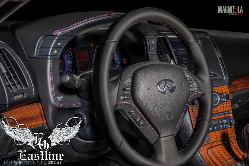 Infiniti G37 – преображение руля и козырька приборной панели, перетяжка потолка и шумоизоляция крыши.