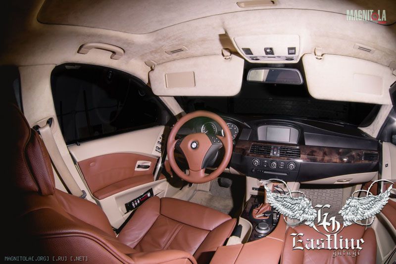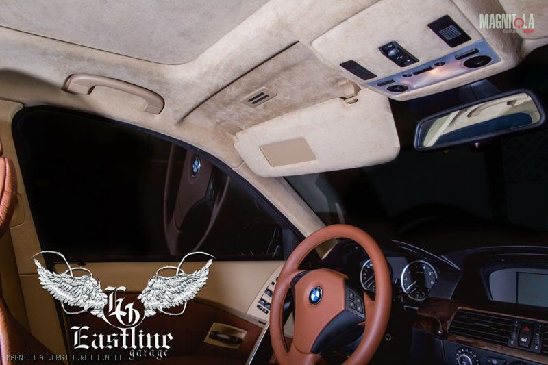 BMW 5 E60 – перетяжка потолка, стоек и солнцезащитных козырьков в итальянскую алькантару