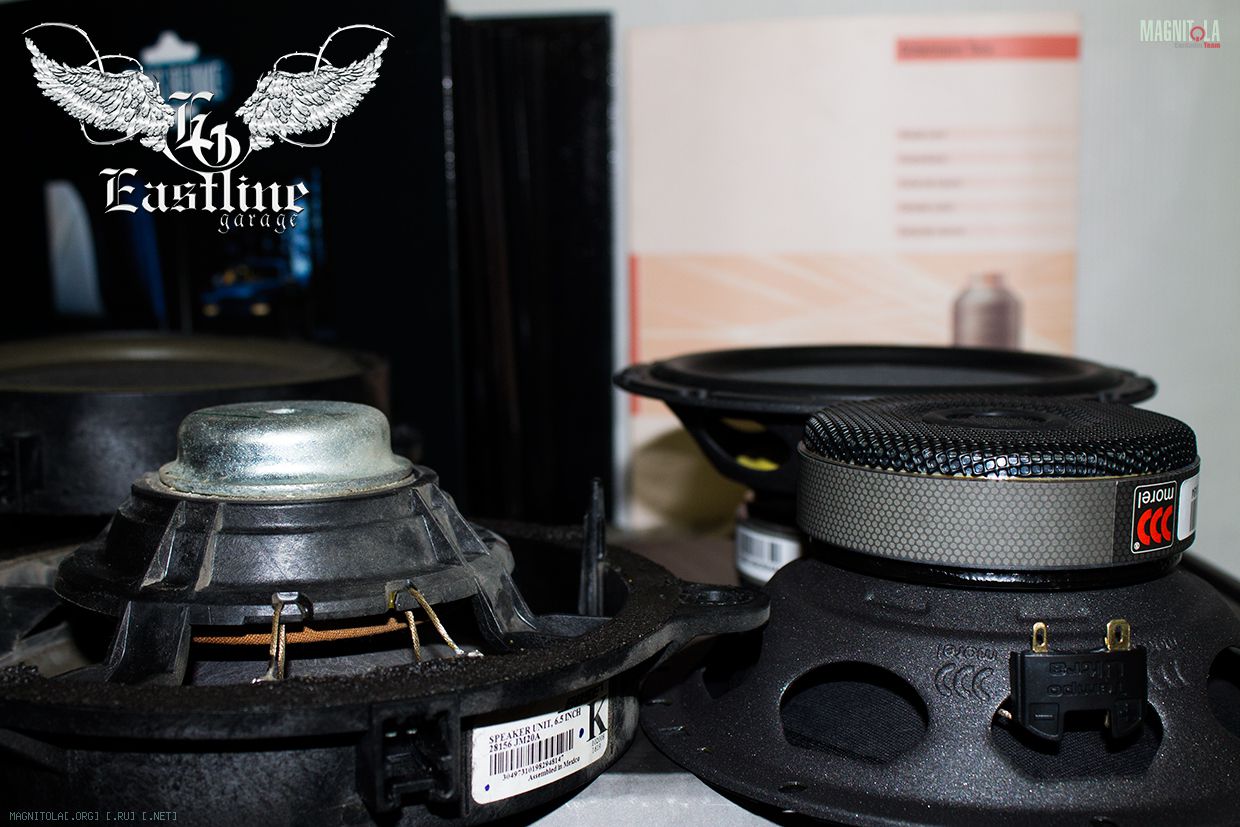 Демонтировав родной Philips 1990 года производства мы заменили его на новенькую двух полосная коаксиальную акустику Morel Tempo Ultra Integra 502. Модель на рынке уже порядка двух лет и отлично проявила себя, в нашем случае это был оптимальный выбор подходящий под требования клиента и самое главное подходящий по характеристикам, ведь требовалось сохранить оригинальное сопротивление на уровне 4 Ом, а благодаря современным технологиям производства выходная мощность этой системы порядка 220 Вт.