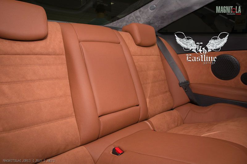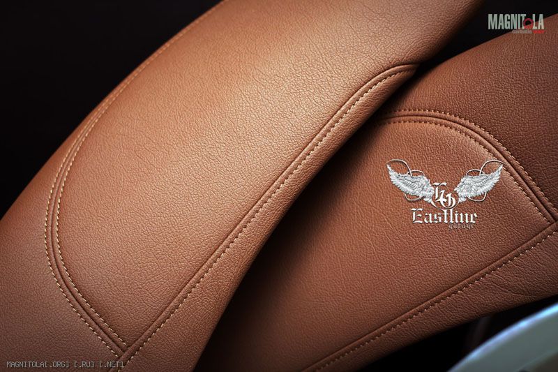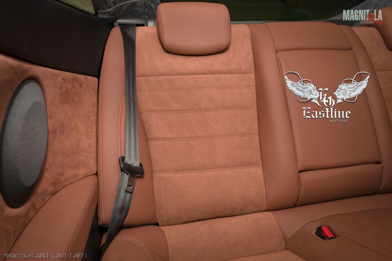 Центром внимания в салоне стали сиденья, выполненные из итальянской алькантары и немецкой экокожи коньячного оттенка. Благодаря огромному ассортименту материалов в нашем ателье, удалось подобрать идеально подходящие по цвету материалы даже у разных производителей. Центральная часть сидений выполнена в алькантаре, что делает их более хваткими и цепкими.