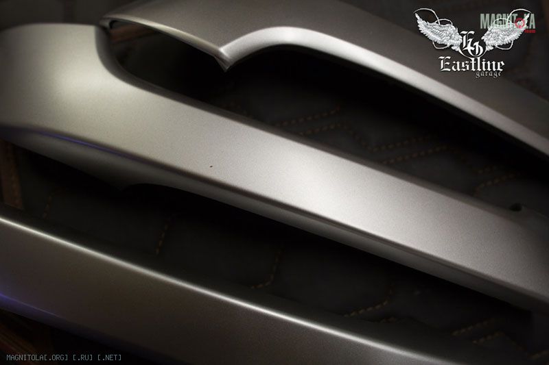 Однако основным элементом, задающим в салоне «алюминиевое» настроение является центральная консоль, она полностью оклеена в уже упомянутую пленку. Уникальность этой пленку заключается в ее универсальной фактуре и цвете, идеально подходящем для абсолютно любого салона.