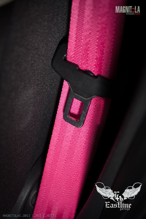 В салоне чуть больше изменений и самое яркое из них это конечно же розовые ремни безопасности.