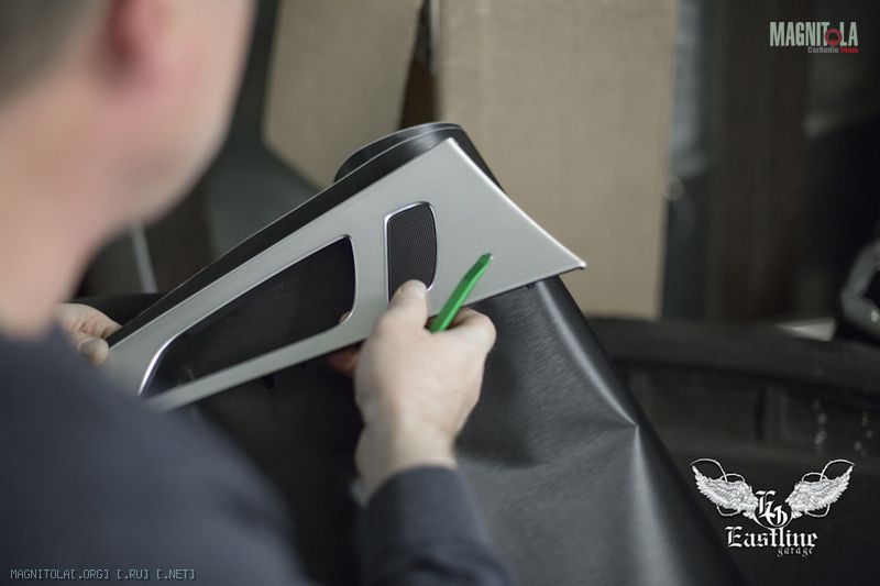 Оклейка салонного пластика пленкой производится при полном демонтаже всех деталей, к сожалению, с каждой новой модификацией меняются схемы сборки и разборки салона. Мастера Estline Garage порой «в слепую» начинают работу над новой моделью, изучая ее особенности крепления панелей. Работа по демонтажу салонного пластика занимает большую часть времени при оклейке винилом, ведь так важно сохранить первозданный вид салона, аккуратно, с максимальной точностью и неспешностью отнестись к каждой, даже самой мелкой детали.
