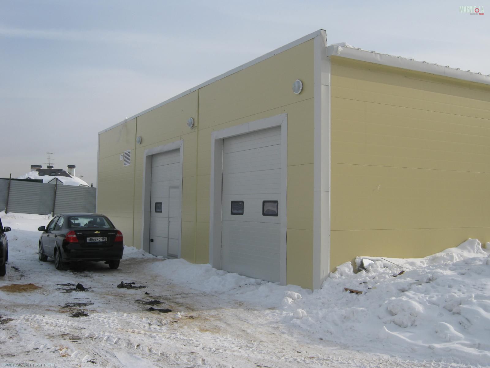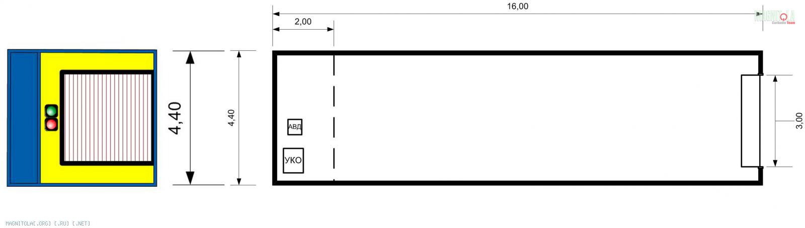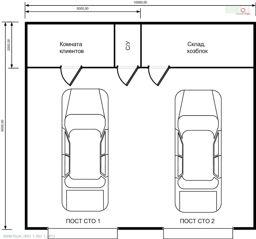 Навскидку, двухпостовый стационарный бокс 90м2 с двумя въездными воротами,