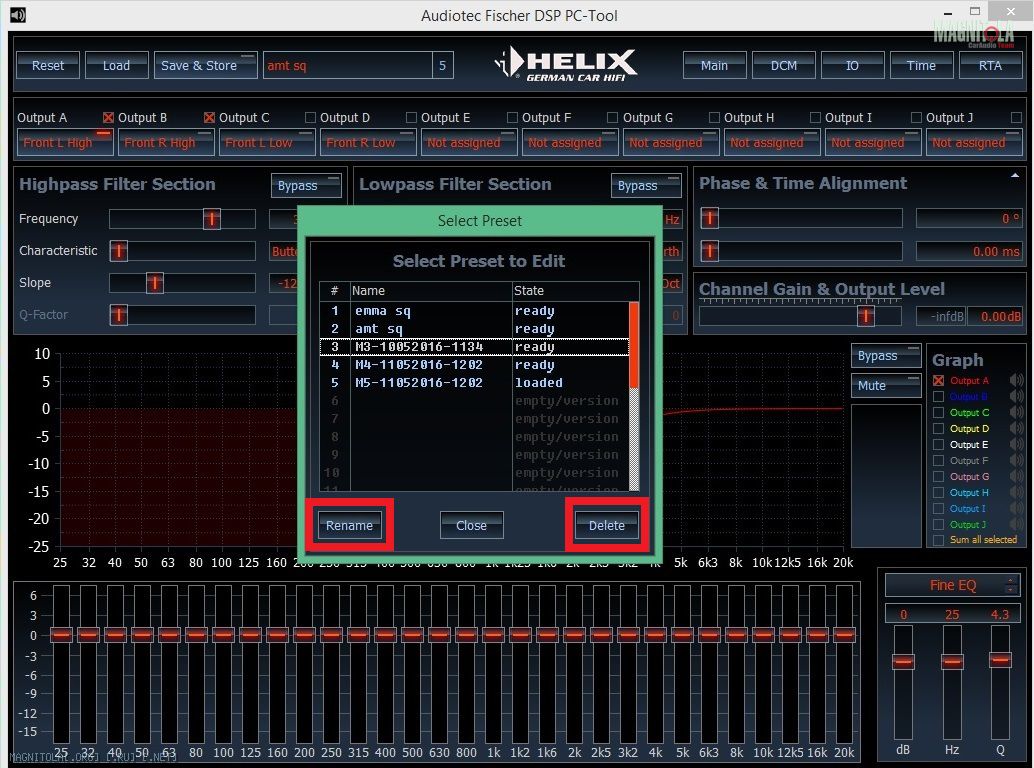 Требуется только кликнуть по квадрату с номером банка памяти. Откроется диалоговое окно, где вы можете "переименовать" пресет или "удалить" (только для номеров 3-22).