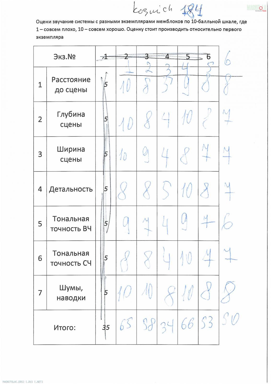 Костя, правда, заслушался музыкой и забыл об этом, присвоив свои оценки первому межблоку, однако мы всё равно результаты оценки разными экспертами не усредняем, так что будем сравнивать относительные показатели.