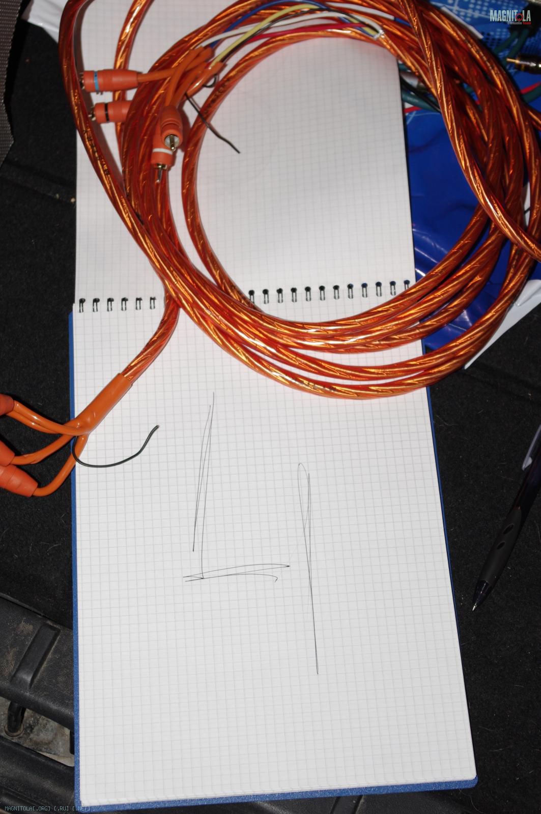 №3 - "Фукусима". стереопара длиной около 4 метров. Этот кабель приехал к Тимуру Tim635 из далёкой Японии вместе с одним из клэрионов, купленных на аукционе. Своим внешним видом межблок похож на китайские шнурки для подключения видеомагнитофонов Powasonic к телевизору Akaiwa. В предварительной оценке его реабилитриует только тот факт, что он был заряжен лучами добра с Фукусимы