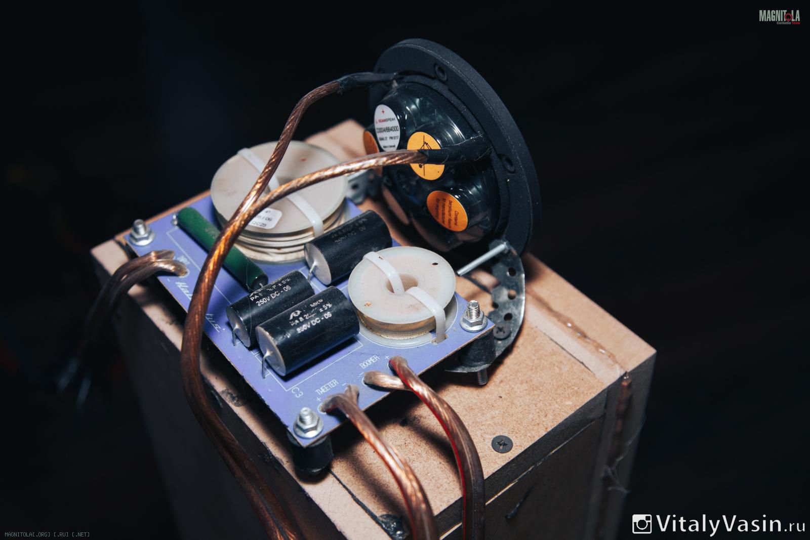 Всё это дело подключалось к ВЧ ScanSpeak d3004/6640 и мидбасам Peerless 830883 сначала через пасскроссы (ХЗ, от какой акустики, я так и не запомнил:)), а потом поканально.