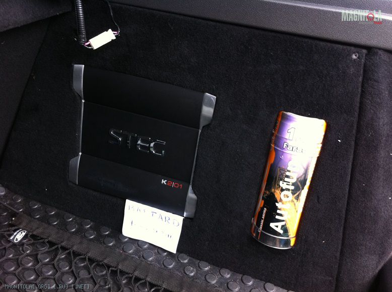 В багажнике саб Audio Art by Revolt RW12 подключен мостом на Steg K 2.01 (установлен там же в багажнике в фальшпанели с конденсатором).