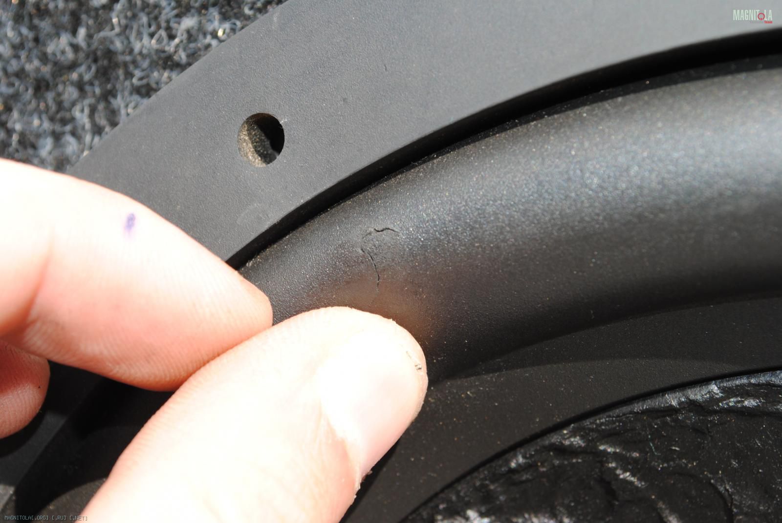 На подвесе есть трещинка от соскочившей отвертки, на звук и работу не влияет.