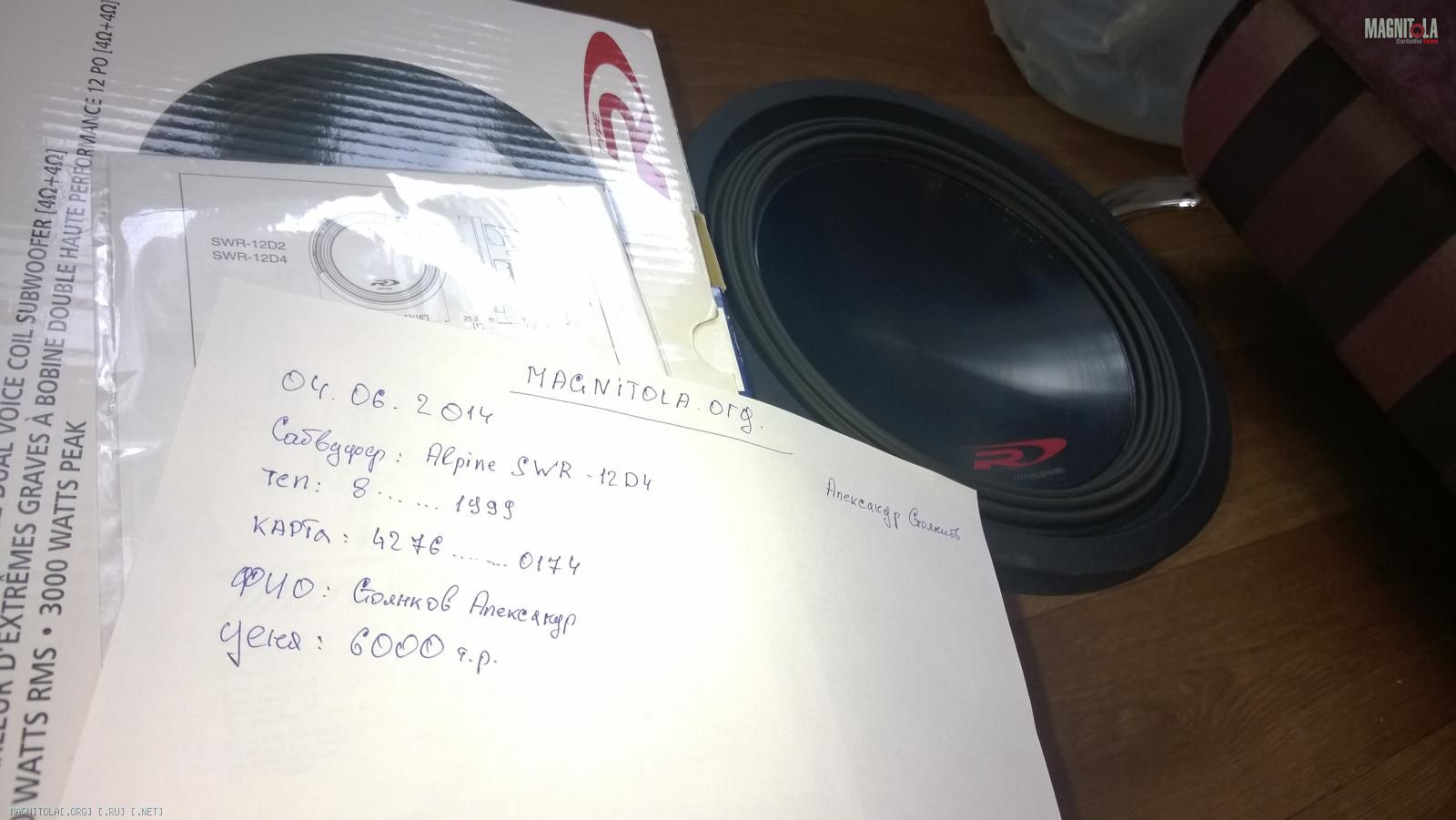 Продам сабвуфер Alpine SWR-12D4 в идеальном состоянии, играл пару месяцев в ЗЯ от двухканальника в 4Ом, очень бережно разминал. Причина продажи - продал машину, продаю некоторые компоненты.