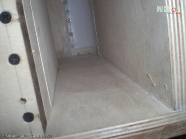 Коробулька ФИ, рабочий объём 55 литров, порт 300 кв. см)) настройка 33 герца, длина порта 130см)) Материал 21мм влагостойкая фанера. Ничем не обтянут.