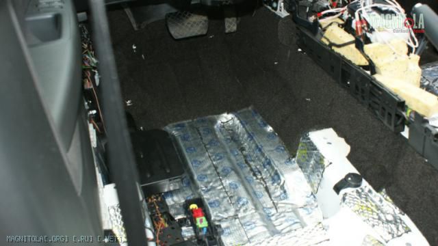 Ну а дальше собственно вперёд на пол, арки, туннель АКППП и насколько позволило место моторный щит я закатал в три слоя. Первый - БОМБ, второй М1 и третий беттапласт 5-ка.
