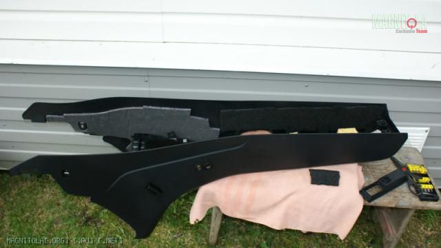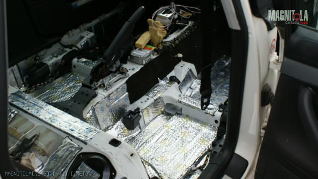 Параллельно проклеивая центральный конь-соль шубоизолятором "ёжик-85"