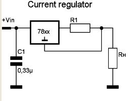 И ещё. Для питания навигатора, регистратора схемка пойдёт, а вот для телефона нужен стабилизатор тока. Так как батарея телефонаь обычно требует заряда определённым током, иначе ей быстро придёт конец. Схемка регулятора тока такая: