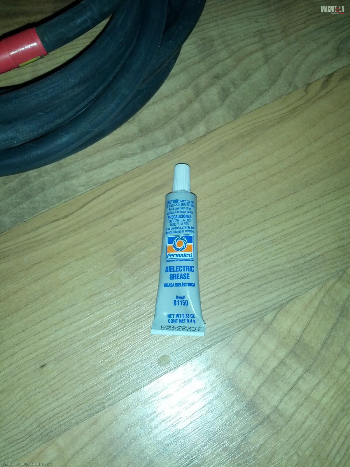 ЗЫ рекомендую в соединениях использовать смазку защиты контактов Permatex (сделал специально фото). Банка литола думаю никому не нужна дома лишняя, а стоимость этого тюбика в руси всего 100 рублей. Зато уверенно, что не пойдет коррозия и окисление в месте соединения того же кабеля и держателя предохранителя. В сопротивление тоже гадости не вносит, проверял тестером.