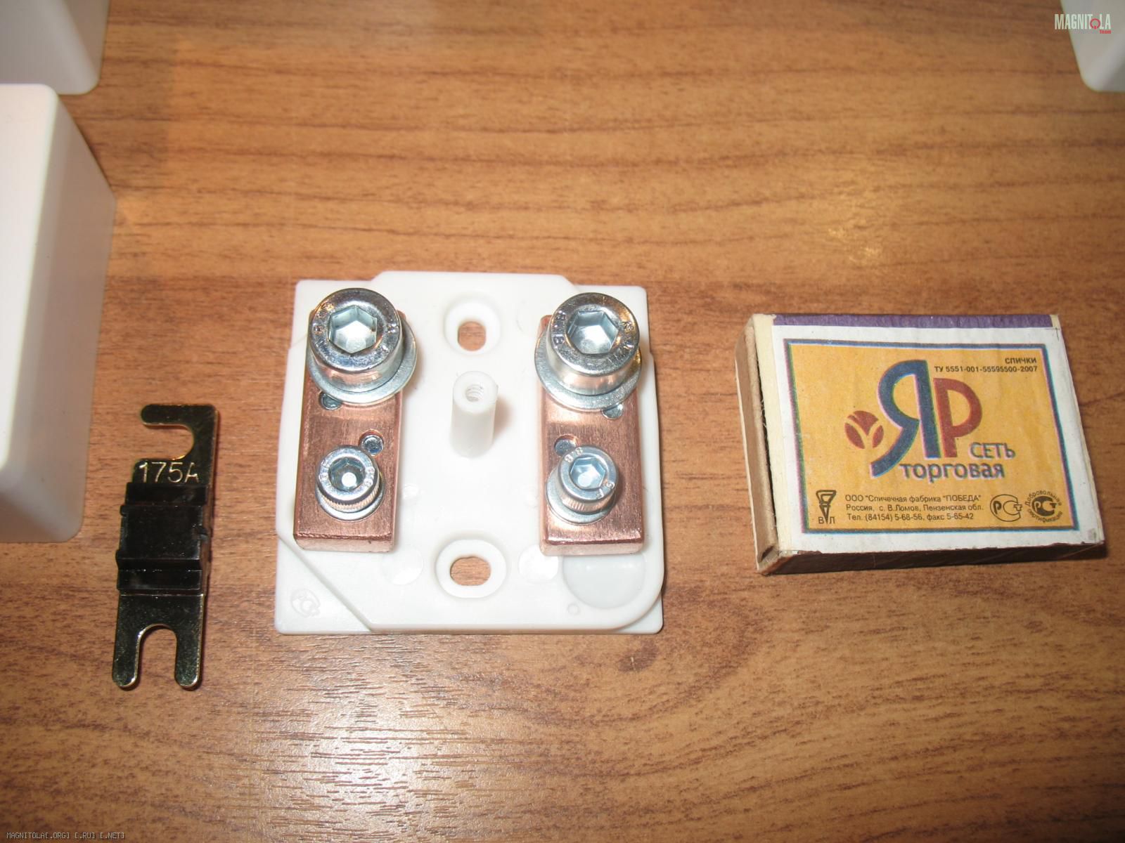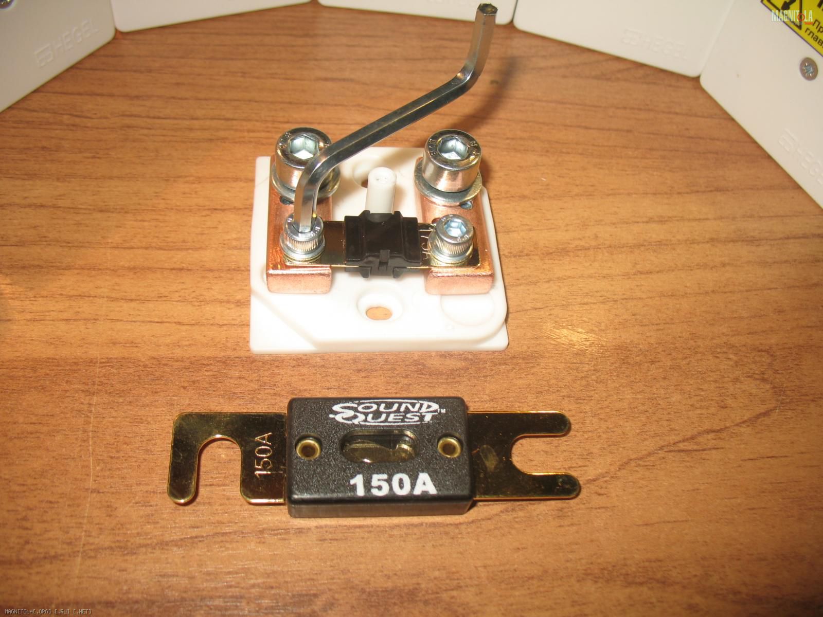 В устройстве путем сравнительного анализа и поиска вариантов - применен стандарт mini-ANL (AFS). Что позволило добиться отличной компактности и возможности размещения практически в любом уголке подкапотного пространства. Замена предохранителя происходит едва ли не быстрее, чем в стандартной колбе. По сравнению с более массивными предохранителями ANL - весь БСП - выглядит так: