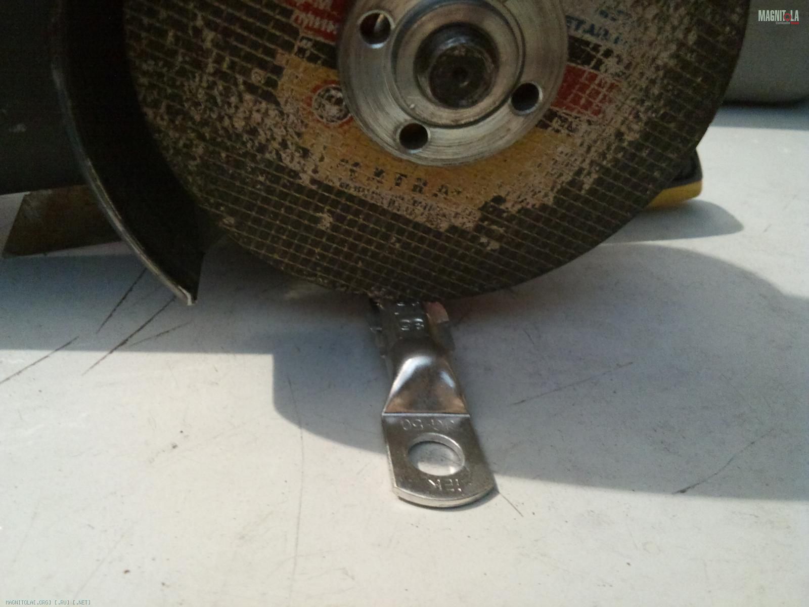 Далее готовимся разделить наконечник на 2 части - точно посередине одной из прессовок - с помощью орезной машинки толщиной круга 1,2 мм: