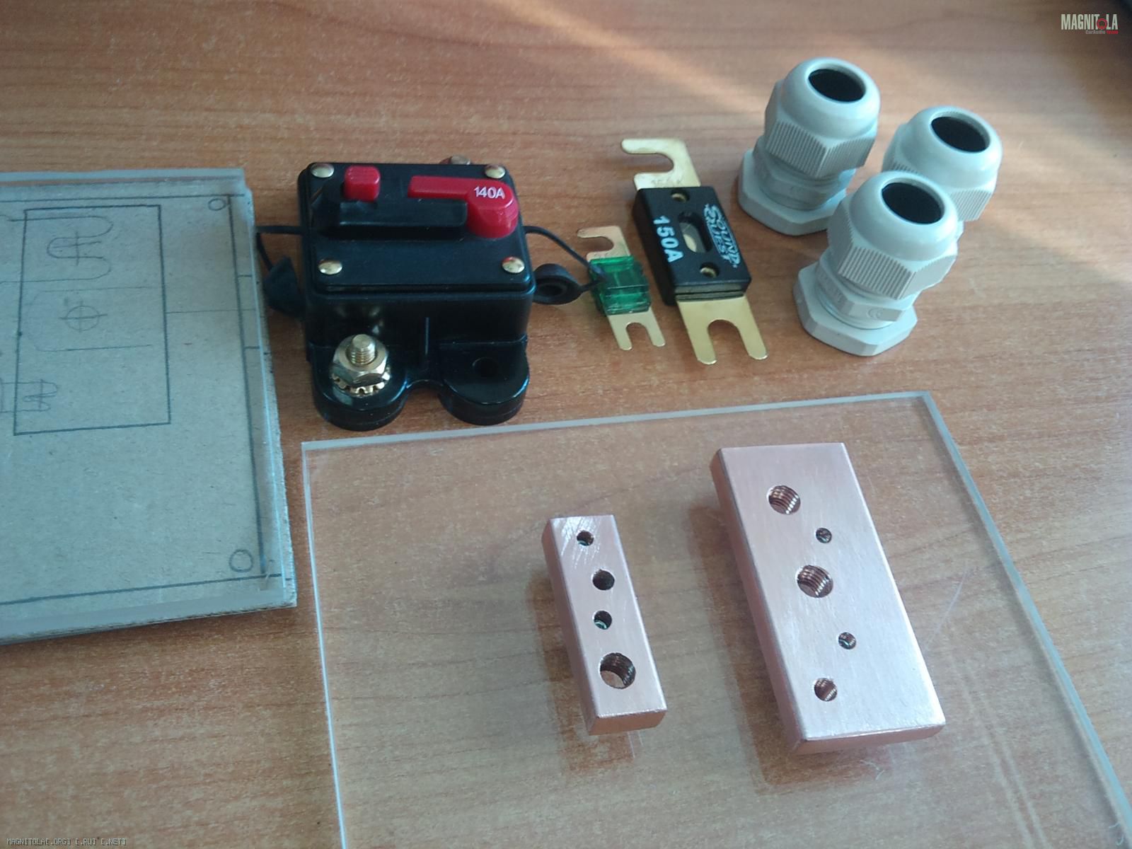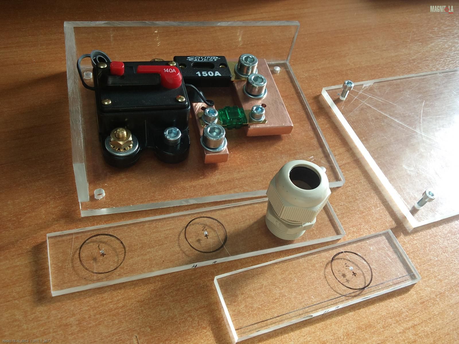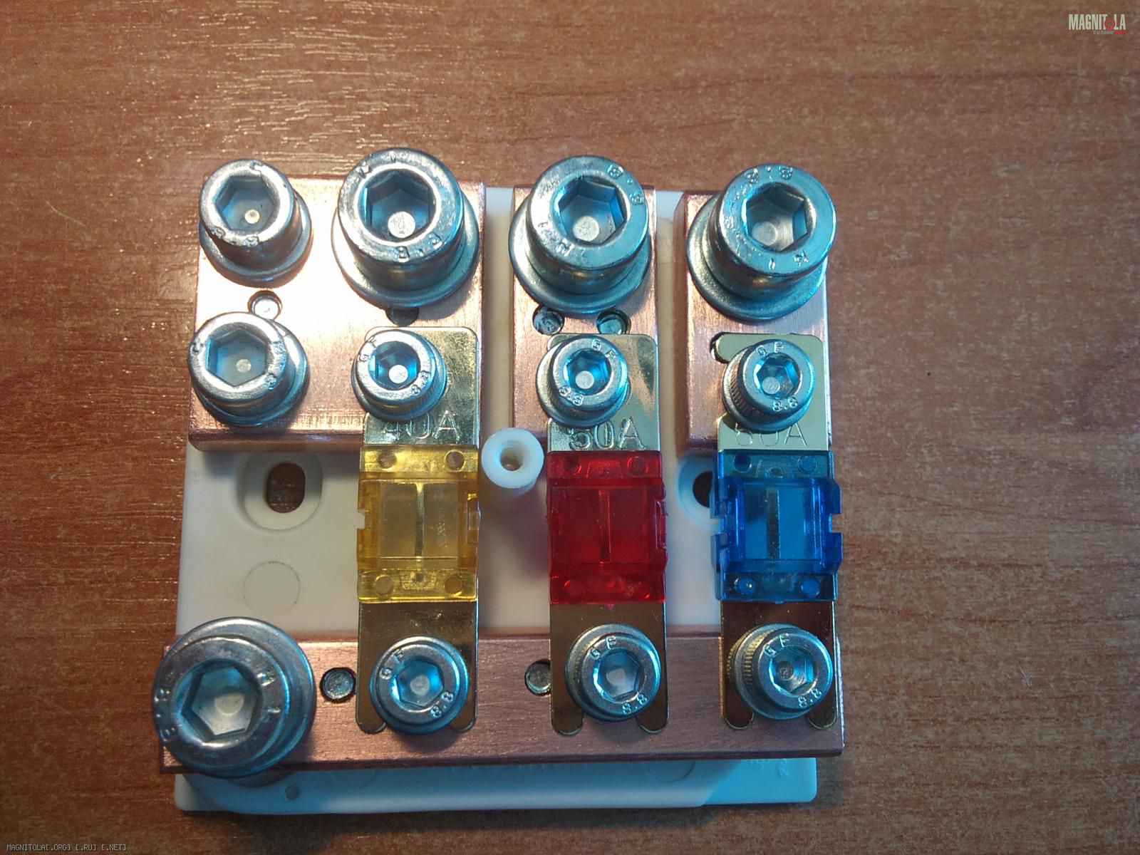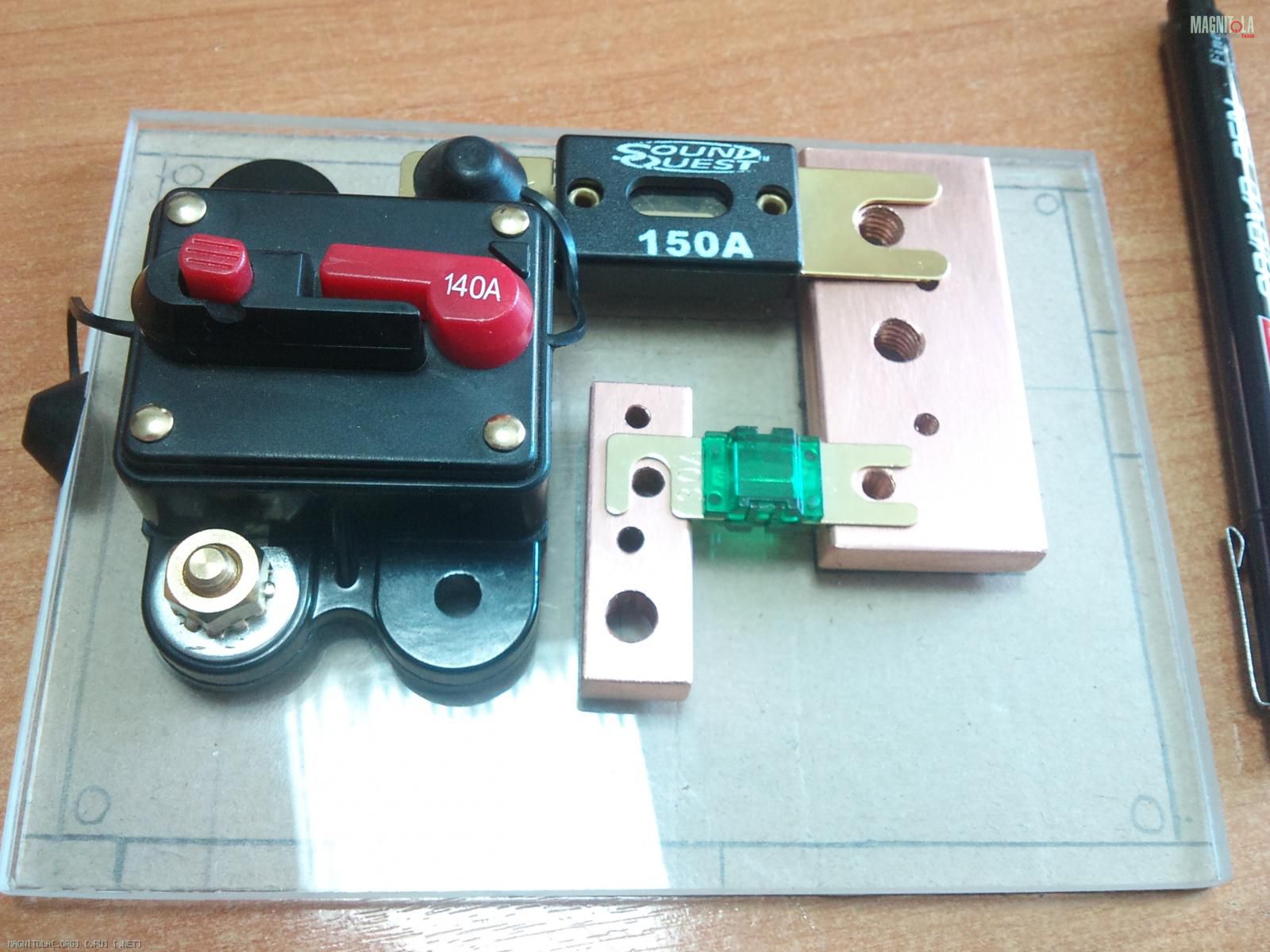 2. Толи от лишнего зачитывания форума, толи от своего изменившегося мнения - закрались сомнения в надежности устройства защиты. Но менять автомат просто на более надежный предохранитель не хотел - он был очень удобен для полного отключения системы. Поэтому пришла простая мысль - совместить автомат в роли расцепителя и предохранитель в роли основного устройства защиты. Плюс также разместить под одной крышей и предохранитель питания ГУ.