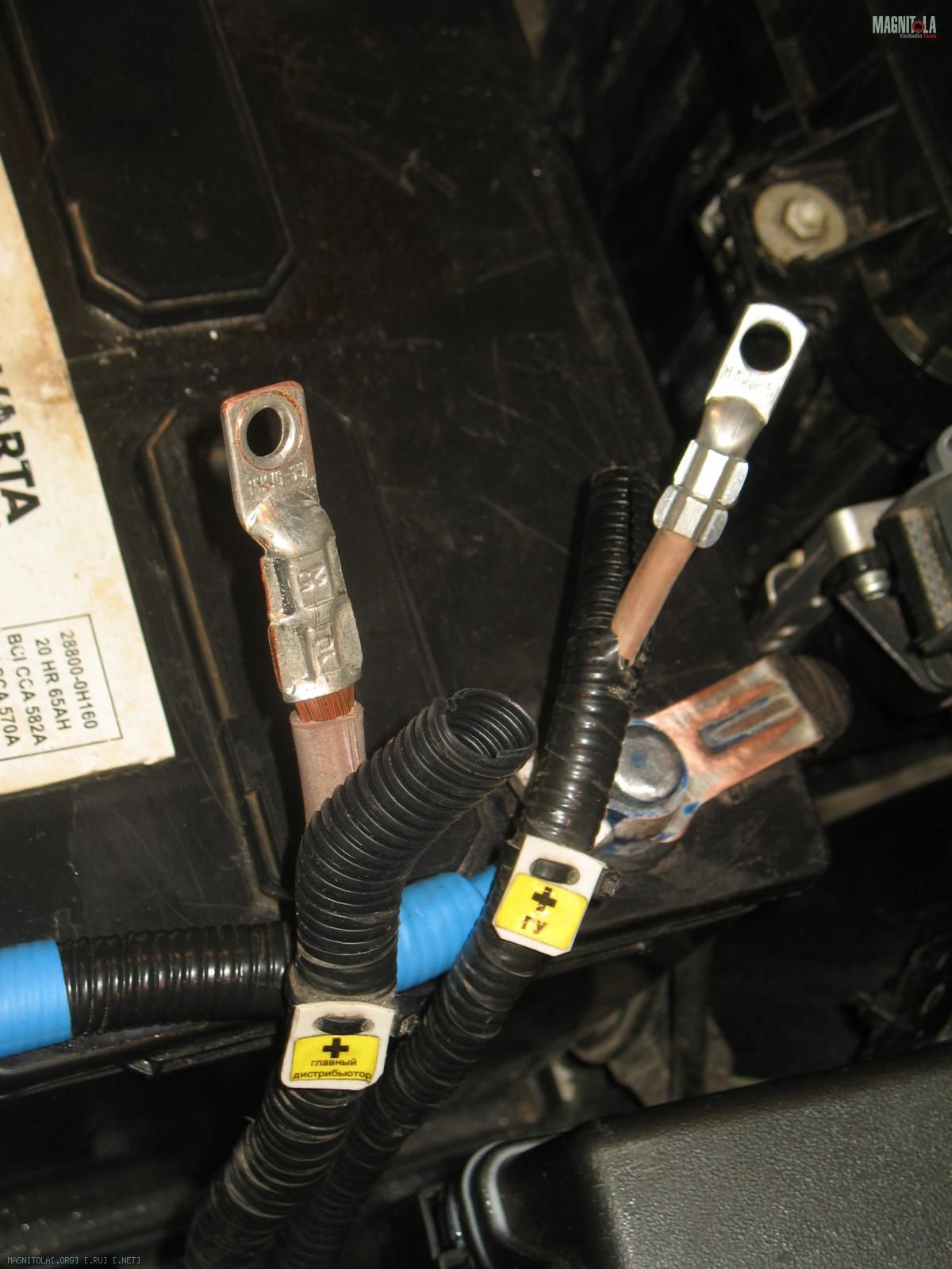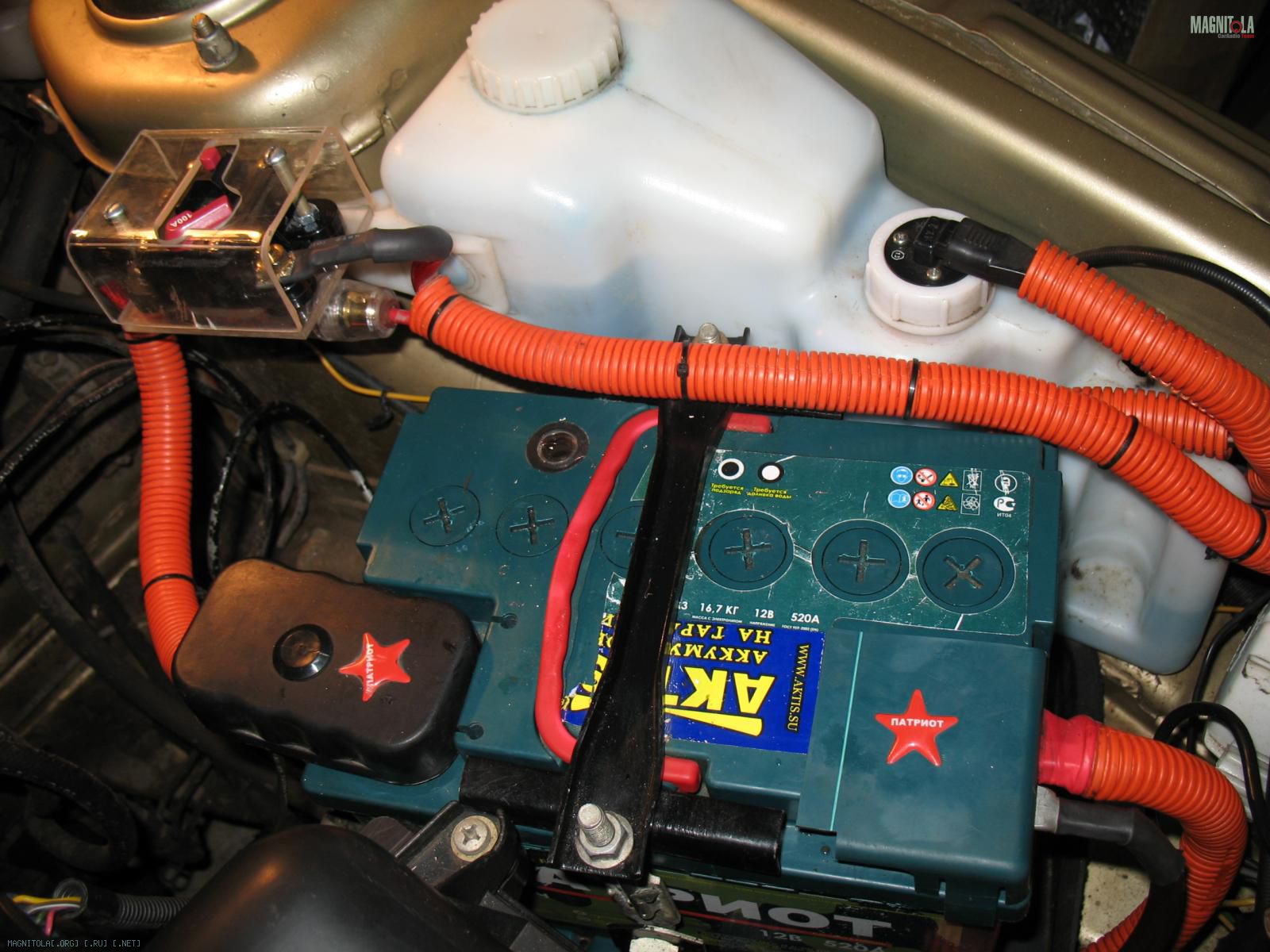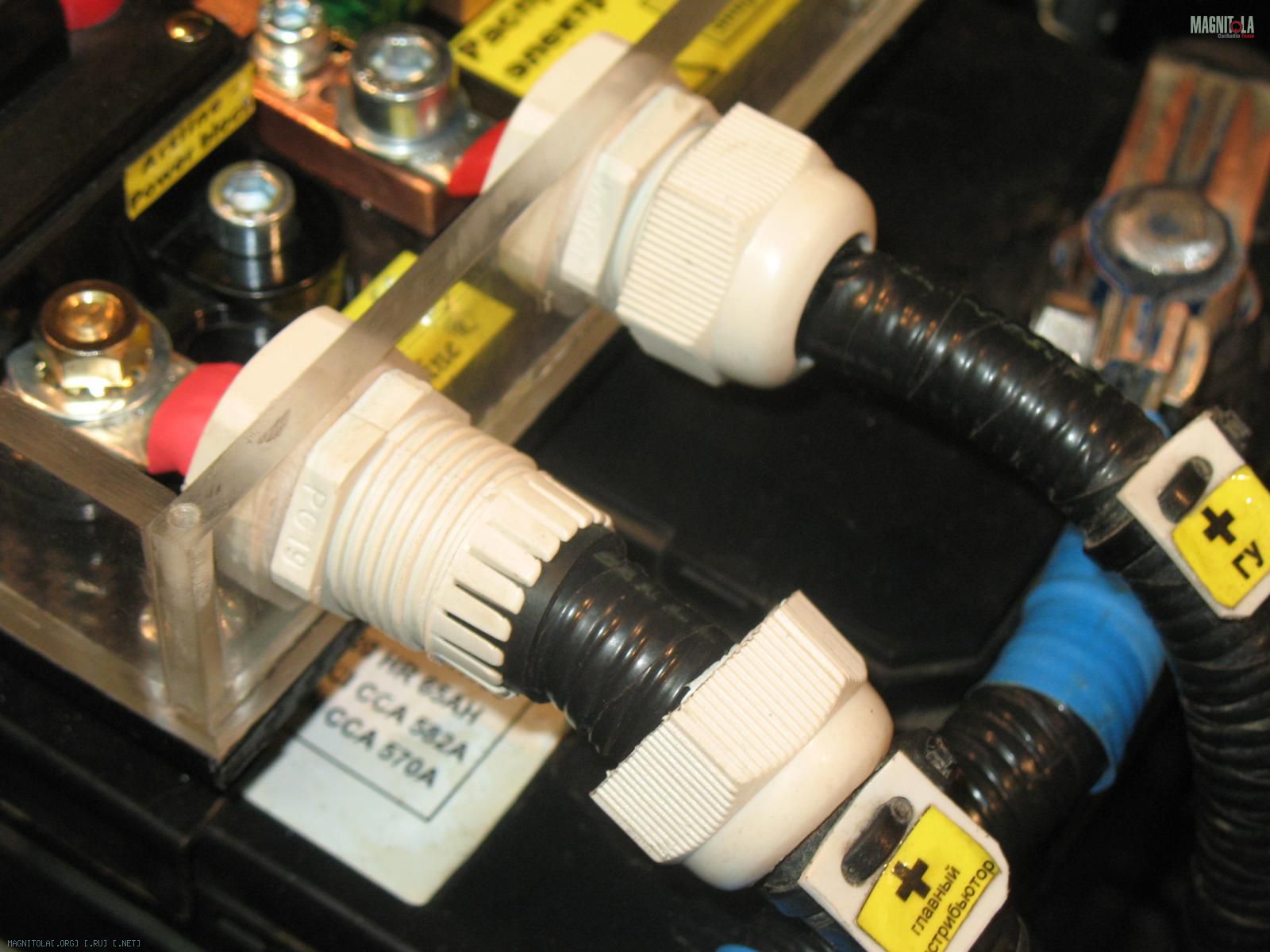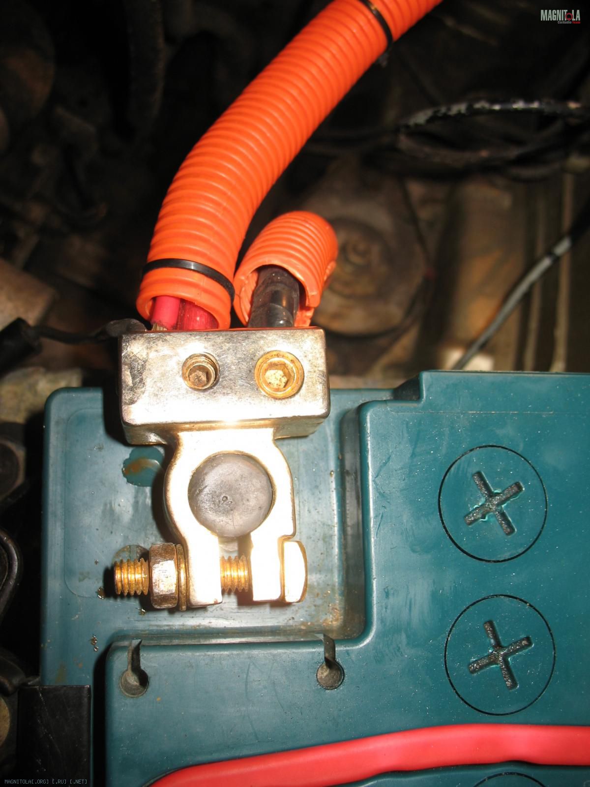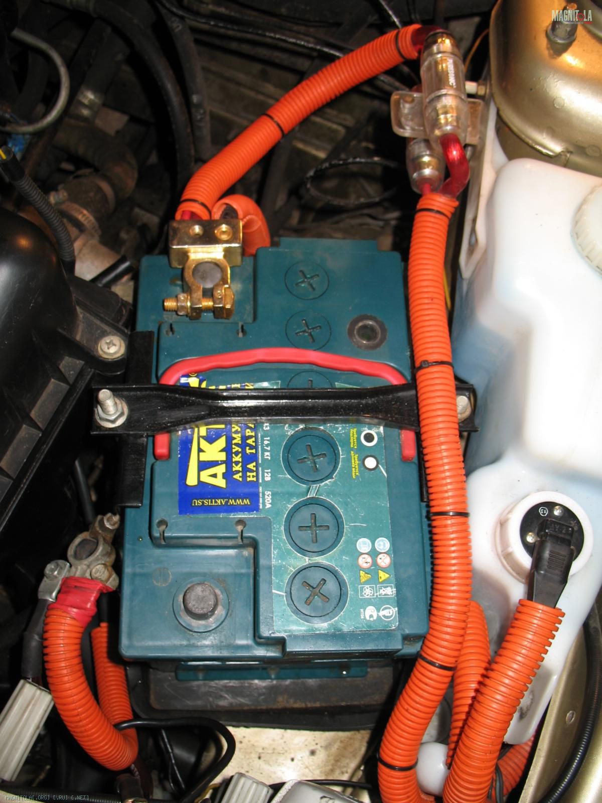 Эксплуатация системы выявила недостаток - токи утечки - и если машина долго стояла в гараже - АКБ по-тихоньку разряжался. Поэтому было принято решение установить автомат - и отключать каждый раз уходя. Автомат был выбран собственно из того что было - Мистери. И знакомство стало очень долгим как будет видно потом. Техника которую многие ругают - отработала на ура 5 лет. Может токовая защита в нем и не самая надежная, но всеже как расцепитель устройство стойко работало и было сделано очень много откл/включений без проблем! Подробнее тут - http://magnitola.org/pitanie-i-kommu...d-kapotom.html