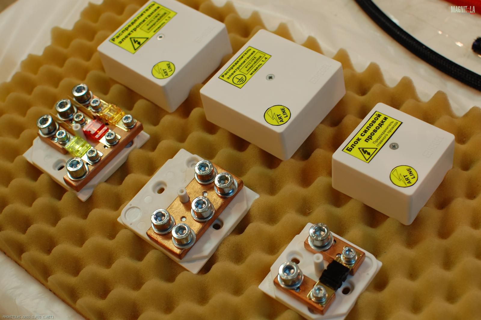 Фото готового комплекта для организации питания 3 усилителей. Провод от БСП до распредов и "+" и "-" = 50 мм2.