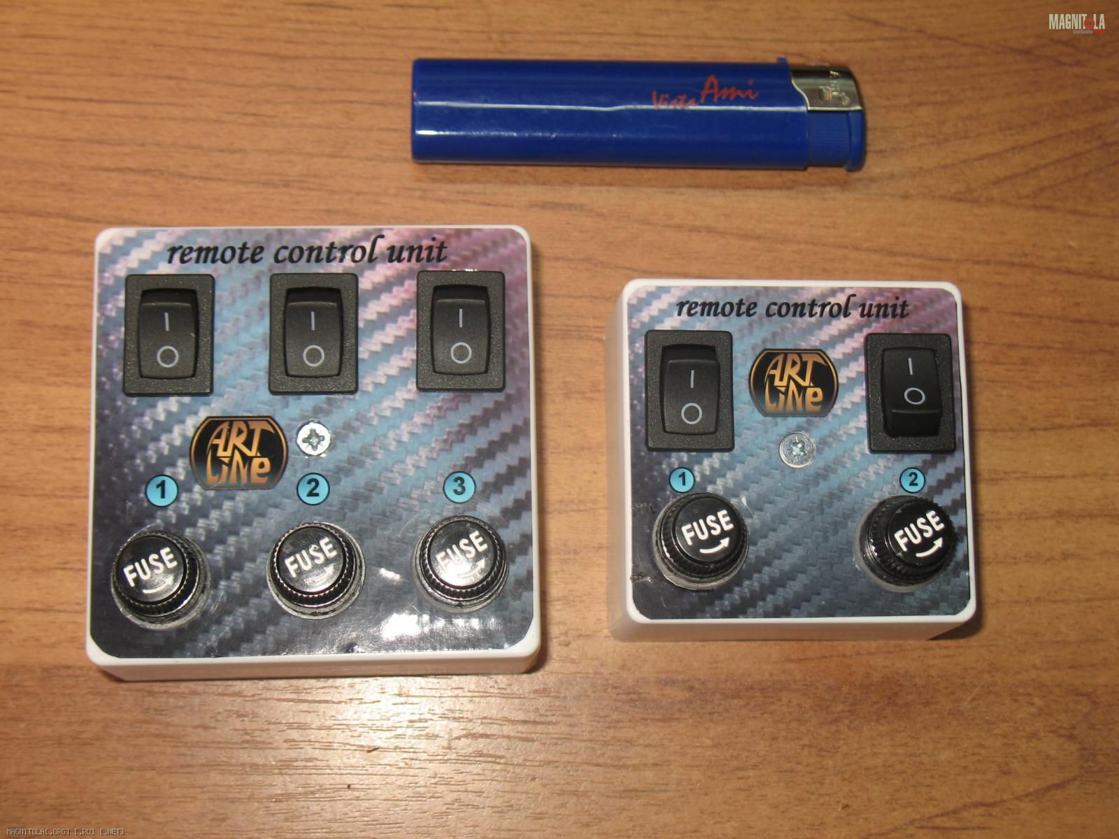 Блок на 2 канала имеет размеры 60х60х30, на 3 канала - 75х75х30. Это дает возможность разместить блоки в удобном месте между передними сиденьями (в подлокотнике) или где то на торпедо.